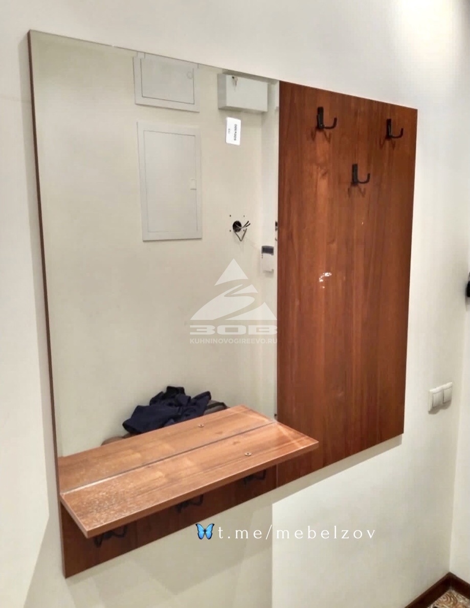 от 40 000 р. МГС107. Зеркало в коридор, созданное: Полочки из лдсп Ясень, Зеркало с полочкой из лдсп, Крючки МДМ комплект. https://t.me/mebelzov, +79265913182 WA, +79154053131, skzov@yandex.ru, https://kuhninovogireevo.ruДобавить в избранное