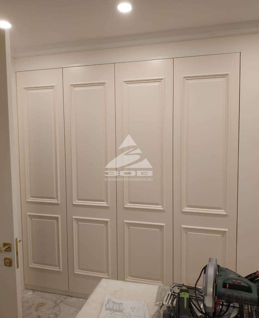 Прекрасный встроенный в нишу шкаф с фрезерованными фасадами из Эмали. Воздушный и элегантный.